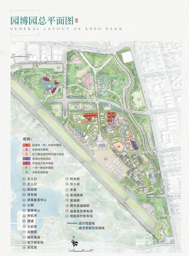 目前,39個城市展園邀展工作已全面完成,34個城市已完成展園方案設計。園區內配套4條市政道路基本建成,駱崗公園智慧中心已投入使用;景觀綠化、地下停車場、航站樓加固和立面改造、水生態及配套等工程正在快速推進,計劃2022年12月底基本完成。